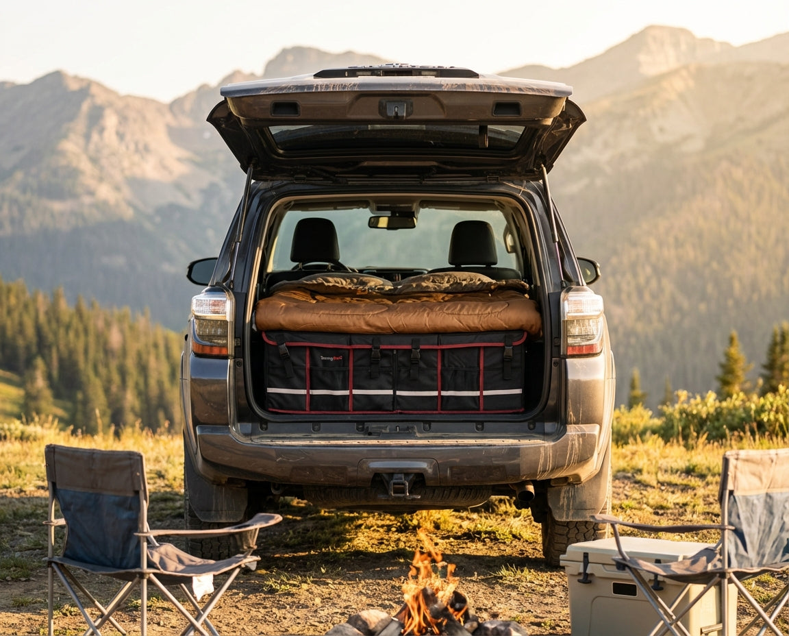 The all-in-one solution that solves the biggest hassles of car camping—comfort, organization, and convenience, all in one setup.
